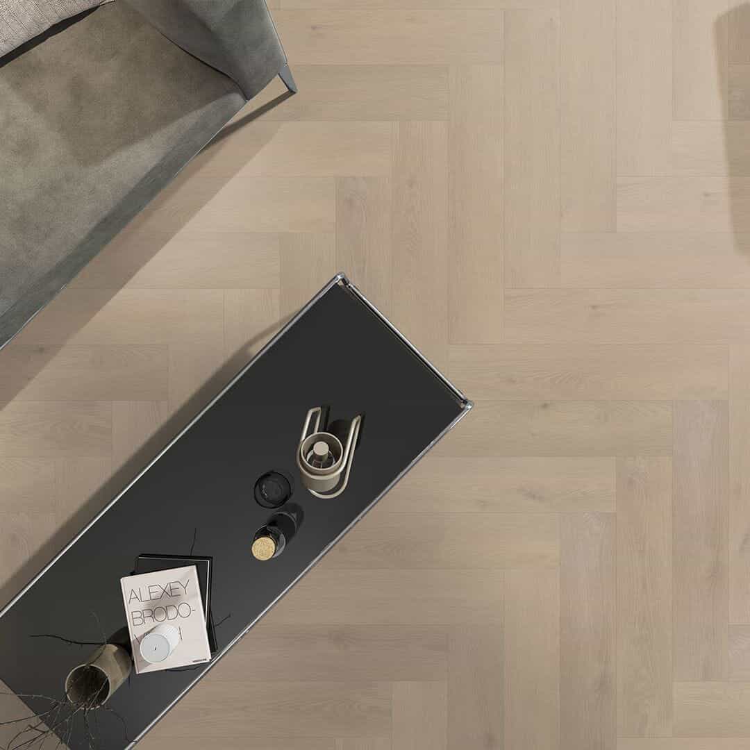 De Floors pvc plak visgraat vloeren worden volledig verlijmd op de ondergrond, wat zorgt voor een strakke, stille en stabiele afwerking. Alle varianten zijn 2,5 mm dik en hebben een sterke slijtlaag van 0,55 mm, waardoor de vloer uitstekend geschikt is voor intensief gebruik.
