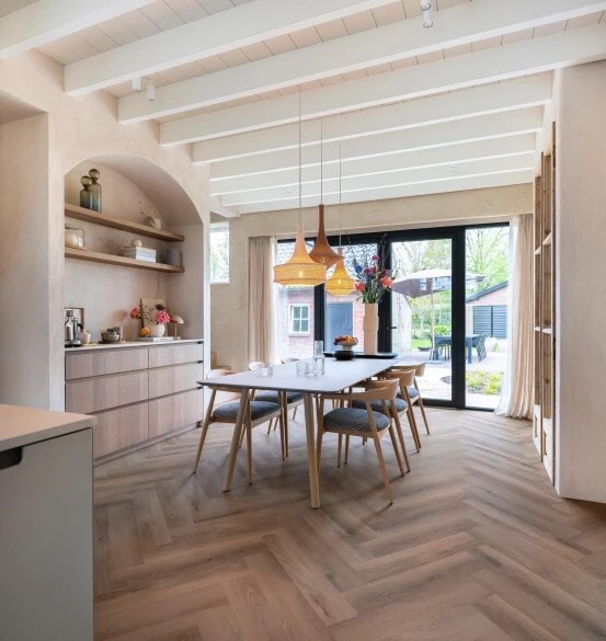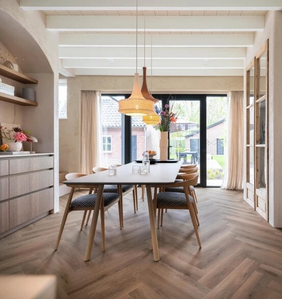 Zoek je een vloer die in meerdere ruimtes werkt? SDS 77826  – PVC Plak Visgraat XL is toepasbaar in onder andere de woonkamer, keuken, slaapkamer en zelfs de badkamer. De XL stroken van 73 × 14,6 cm geven het visgraatpatroon extra rust en een ruimtelijk effect. Daarbij is de vloer geschikt voor vloerverwarming en -koeling voor comfortabel wonen, het hele jaar door.